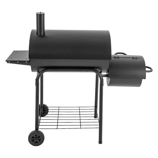 Freistehender Holzkohlegrill mit Beistelltisch, Ablageflächen und Rollen, robuste Stahlkonstruktion