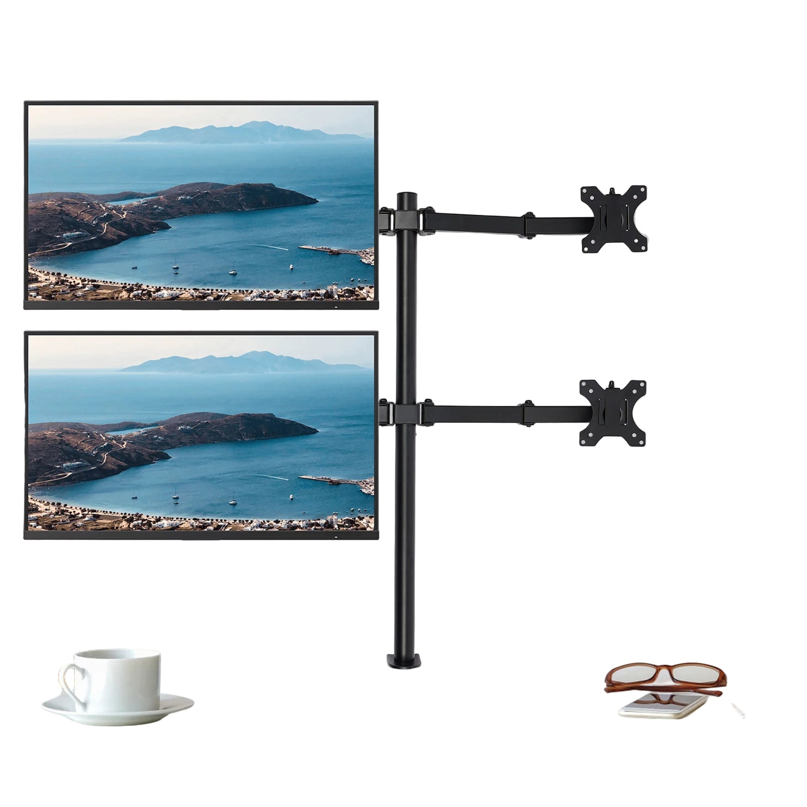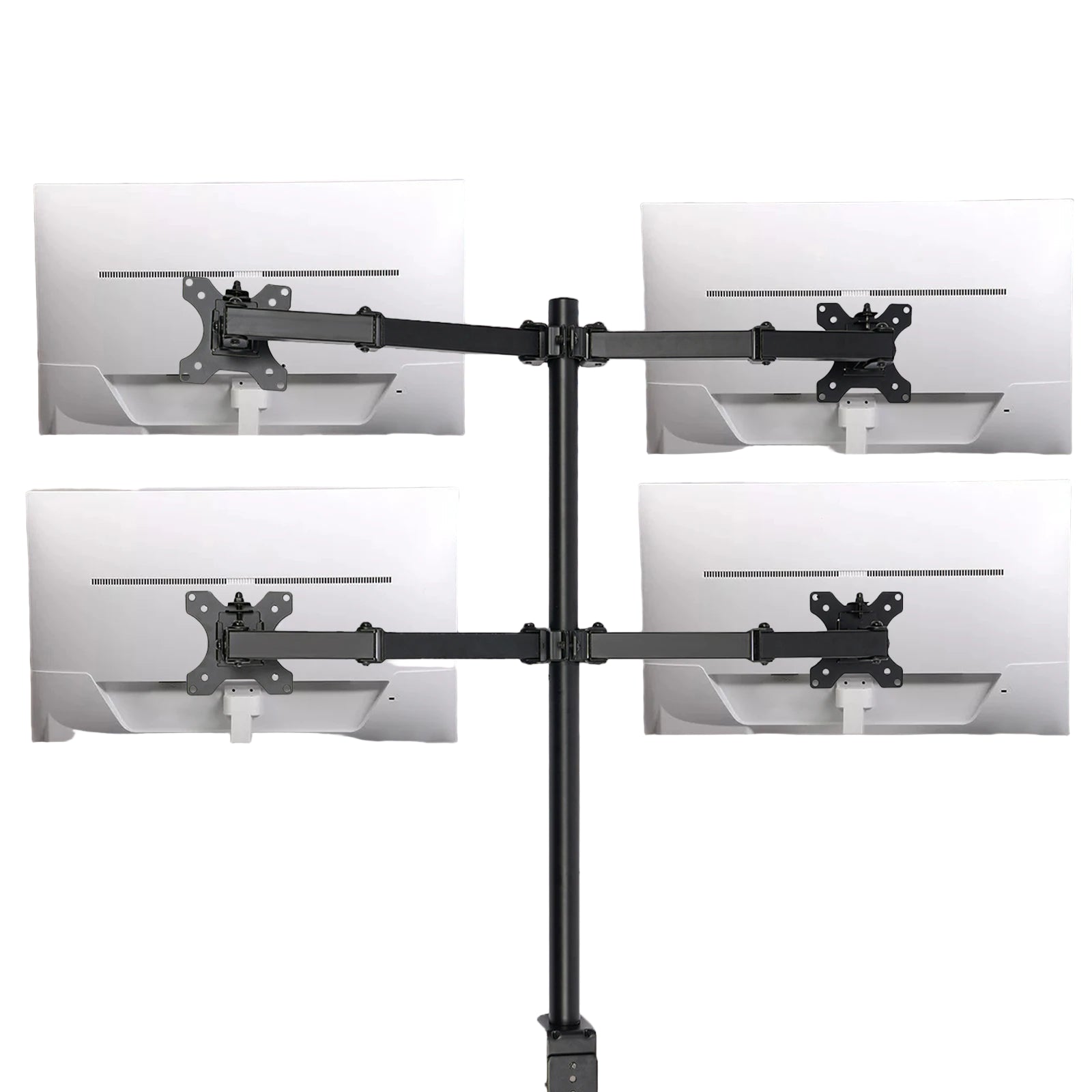 Monitor-Tischhalterung aus kaltgewalztem Stahl mit vier Armen. Dreh- und neigbar für flexible Ausrichtung von bis zu vier Bildschirmen. Geeignet für Displays von 10 bis 27 Zoll mit VESA-Befestigung 75 × 75 mm und 100 × 100 mm.