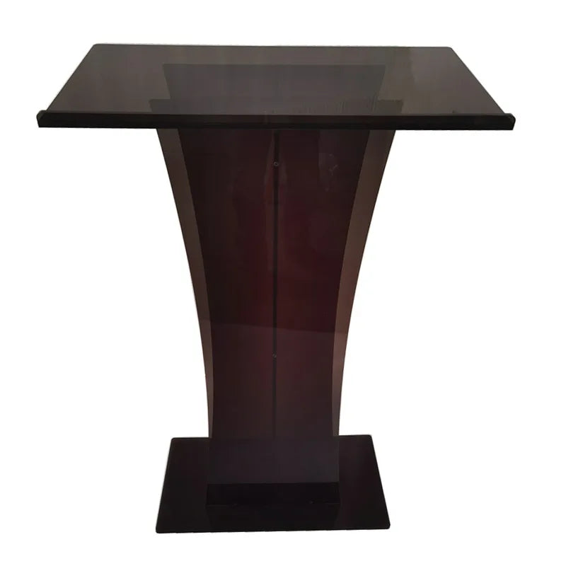 Rednerpult aus Acryl in transparenter brauner Farbe. Einsatz in Kirche, Schule, Akademie, Büro, Konferenz und Presseveranstaltung.