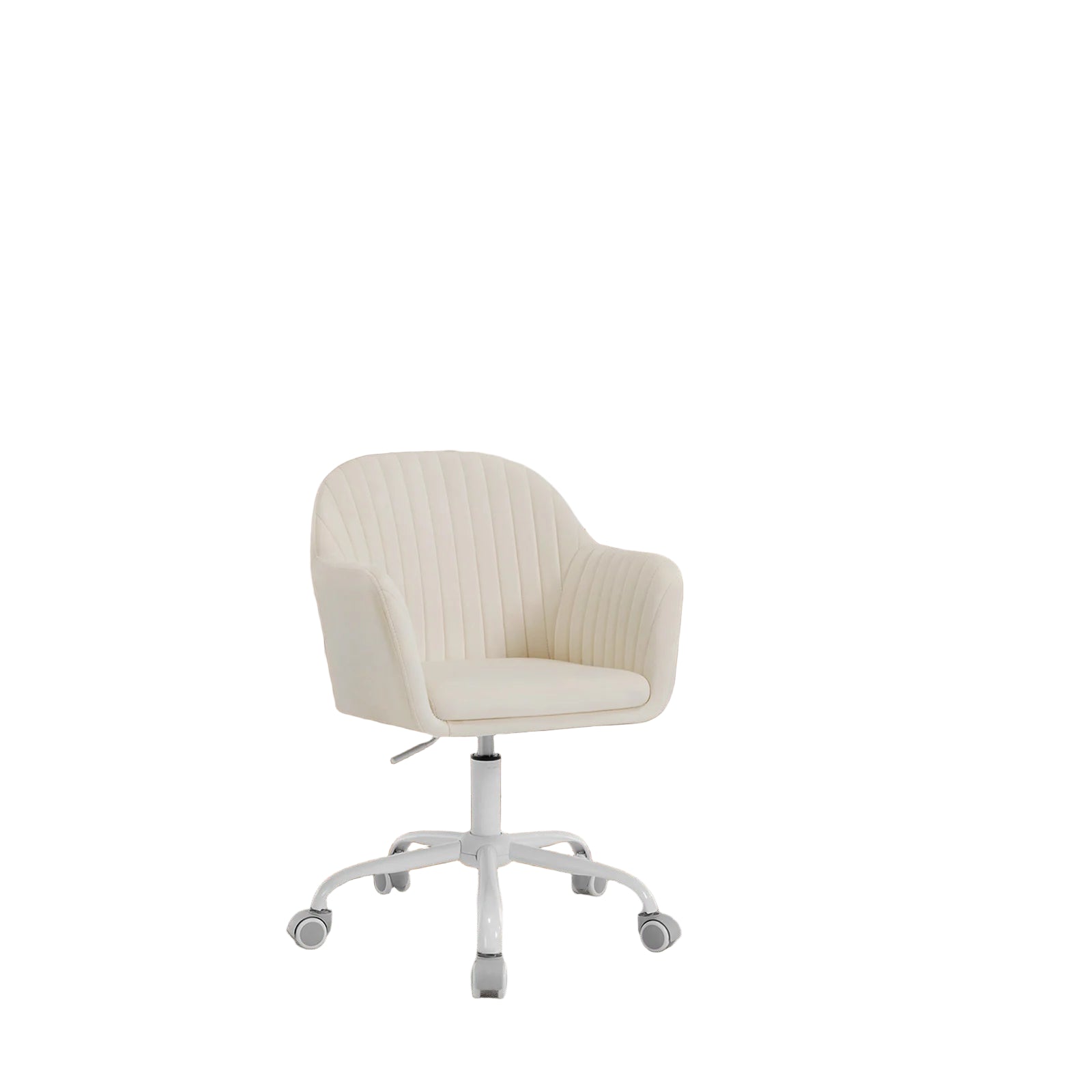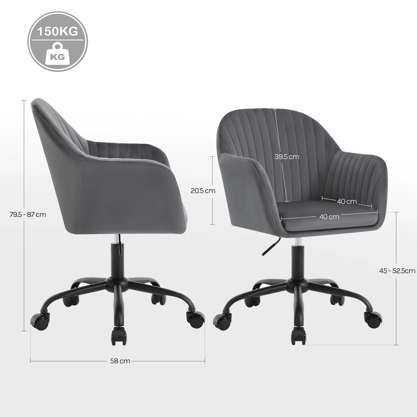 Bürostuhl aus Samt mit gepolstertem Sitz und stabiler Basis. Drehbar und höhenverstellbar, in mehreren Farben verfügbar.